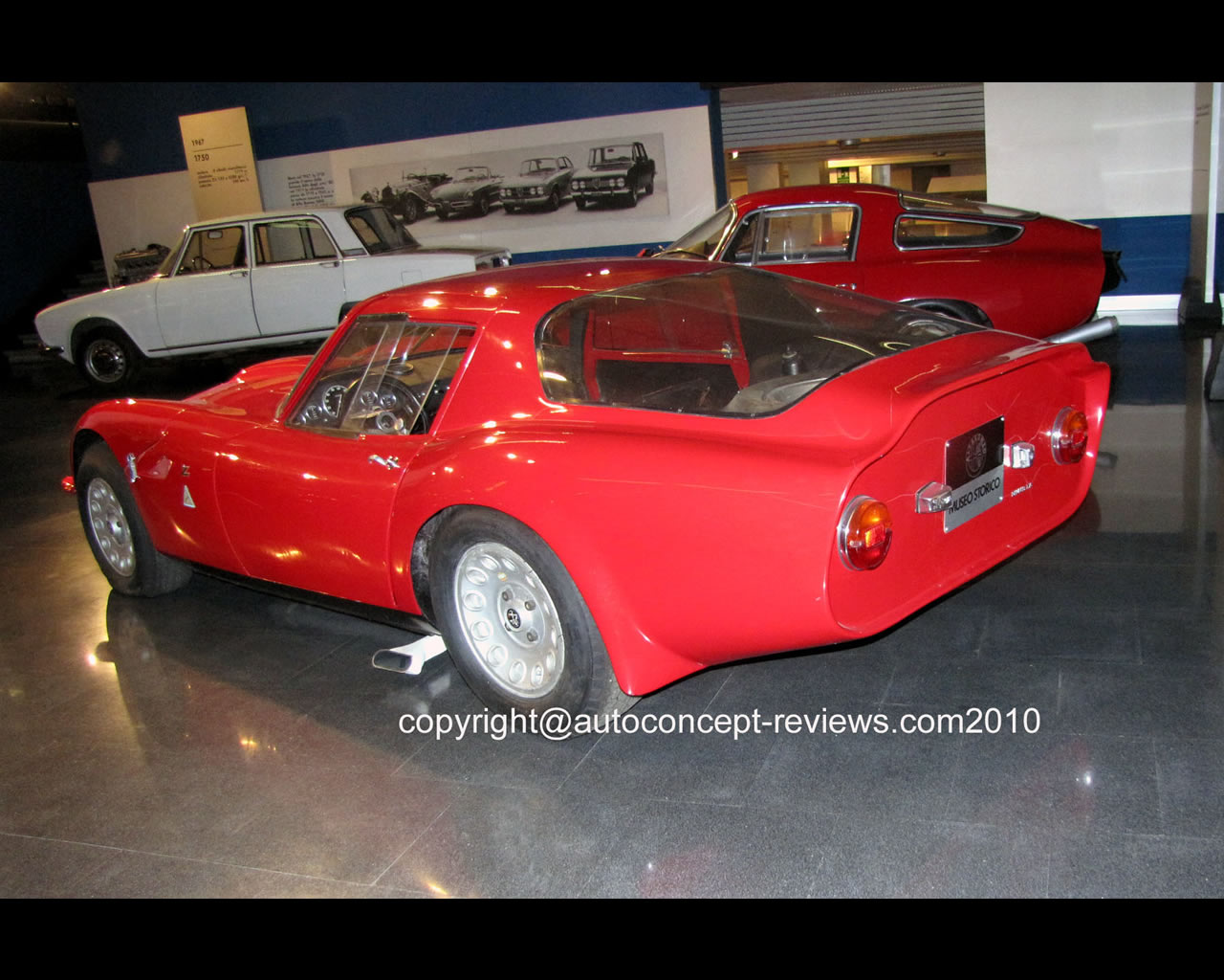 This Alfa Romeo TZ2 was developed directly by Autodelta, the Racing arm of Alfa Romeo, in 1965. Under a glass fibre reinforced composite body there is a tubular frame and a four cylinder 1570 cc engine which developed 170 hp at 7.500 rpm. The top speed is announced for 250 kph. The TZ2 is an evolution of the TZ1 prepared by Zagato; it has a remodeled body and lower tubular frame. |