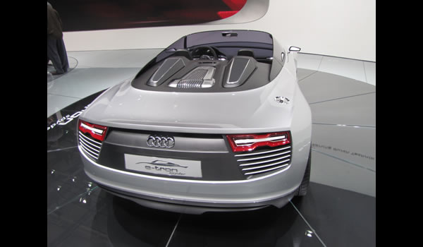 Audi presents the Audi e-tron Spyder, the study of an open sports car, at the fall 2010’s largest auto show. The show car, with plug-in hybrid drive, is 4.06 meters (13.32 ft) long, 1.81 meters (5.94 ft) wide and only 1.11 meters (3.64 ft) high. The two-seater is equipped with a 221-kW (300-hp) twin-turbo V6 TDI at the rear axle and two electric motors producing a total of 64 kW at the front axle.