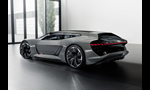 The widely extended wheel arches located opposite the central cabin are noticeable from every angle. They emphasize the extremely wide track of the PB18 e-tron and thereby illustrate the lateral dynamic potential of the car and the obligatory quattro drive. The large 22-inch wheels, each with eight asymmetrically designed spokes are reminiscent of turbine inlets – together with the air inlets and outlets of the wheel arches, their rotation ensures excellent air supply to the large carbon brake discs.
