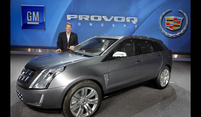 DETROIT NAIAS 2008- The Cadillac Provoq Hydrogen Fuel Cell Concept provides a look into Cadillac's vision for the future of luxury transportation in the form of a hydrogen fuel cell crossover vehicle. The Cadillac Provoq Concept continues General Motors's commitment to displace petroleum use in vehicles through advanced technologies. Using General Motors's groundbreaking E-Flex propulsion system, the Cadillac Provoq Concept combines the new fifth generation fuel cell system and lithium-ion battery to produce an electrically driven vehicle that uses no petroleum and has no emission other than water. The fifth generation fuel cell is half the size of its predecessor, yet it has been developed to produce more power and can drive 483 km ( 300 miles) on a single fill of hydrogen - with 450 km (280 miles) from hydrogen and 32 km (20 mile) on pure battery electric power from the grid.