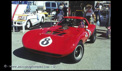 Bill Thomas Motors from Anaheim , California , developed an produced a unique racing car that could challenge the Carrol Shelby new Cobra concept integrating English designed multi-tubular space frame with Ford V8 engine. The Cheetah GT Prototype was intended to be fully American concept. Bill Thomas wanted a mid engine concept, so the engine was placed behind the front axle.Two roll bars protected the pilot and the windscreen had no frame; Body was minimal, just to cover mechanical components and leaving full access . 1963 prototype had an aluminium body but later versions were fitted with fiberglass body. Body style was exceptional for such short wheelbase car. Engine was originated from General Motors, a 5351 cc.(327 cubic inches) V8 unit eventhough 427 unit could be installed in this 775kg car.