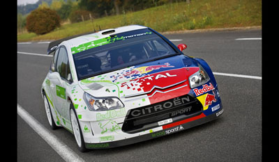 | This Citroen C4 WRC HYmotion4 Concept is the first project of a World Rally Car to be equipped with a hybrid energy recovery system which delivers added performance and lower emissions. This concept car - which delivers a split livery, with the team's familiar World Rally Championship colours on one side, and a design based on a more restful colour scheme redolent of natural materials on the other - illustrates Citroen's stand on environmental matters. |