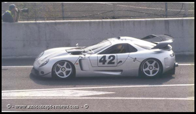 For 1996 edition of Le Mans, Callaway decided to develop from scratch a GT1 prototype. It was completed as C7 R suitable for track racing while a C7 intended for the road was scheduled according to FIA homologation rules. The Callaway C7 R was equiped with a 6297 cc Corvette V8 in mid front position, that is just behind the front axle. The Callaway C7 R was fitted with smooth aerodynamic body with gull wing doors and an impressive rear spoiler.