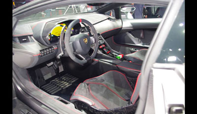 The Veneno is painted in an all-new, grey metallic-look color with individual parts gleaming in the black of the visible carbon-fiber structure. The only car to display all three colors of the Italian flag as an accent is the car shown at Geneva, the unit which will remain property of Lamborghini. The three cars sold to customers each feature a single color of the Italian national flag, together a triology in green, white and red accents and thus representing each a unique piece.