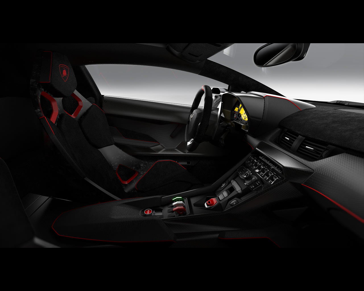 Carbon fiber dominates the interior of the Veneno, too. The carbon fiber monocoque becomes visible inside the car in the area of the central tunnel and the sills. The two lightweight bucket seats are made from Lamborghini’s patented Forged Composite. The woven carbon-fiber CarbonSkin® is used to clad the entire cockpit, part of the seats and the headliner. This unique material is soaked in a very special kind of resin that stabilizes the fiber structure, while allowing the material to remain supple. Like a hi-tech fabric, this extremely fine-looking carbon-fiber matting fits perfectly to any form, and it reduces weight.