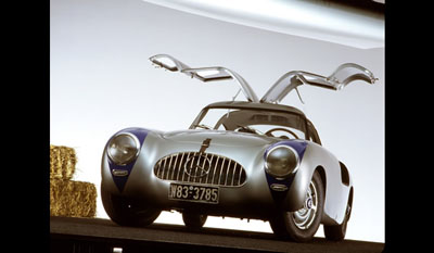 The new sports racing car used a tubular space frame that was so high that access to the cabin could only be arranged through gull-wing doors. The six cylinder engine taken from the Mercedes 300W sedan featured a number of modifications. The most important was a replacement of the carburetors by a direct injection system, a technical advance that was years ahead of its time.