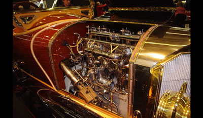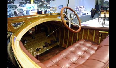 The Mercedes 37/90 hp Skiff exhibited at Retromobile 2011 is a unique model equipped with a bodywork inspired by luxury boat construction. The shape recalls the one of a boat especially around the driver and passenger's compartment at at the rear. It is made of three layer mahogany. There are only two small doors one on each side and access to the cabin is facilitated by steps on each side. This particular automobile was ordered by Henty G. Stetson from Philadelphia, U.S.A.