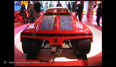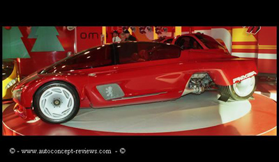 The Peugeot Proxima Concept was introduced in 1986. It is propelled by a 2.8 Litre (2849cc) 680 hp twin turbo V6.The solar-cells above the rear engine cover panel provide power for the electronic key-card and the interior ventilation system. The top speed is claimed at 348 kph (216 mph). (source Wikipedia)