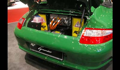 RUF is a German company specialized in transforming Porsche into higher performance exclusive derivation. This time RUF is proposing an electric drive version of the Porsche 911 with drive train by Siemens A.G. , a mid engine with an output of 270 kW (362 hp) and a torque of 950 Nm. Energy comes from Lithium-ion accumulators from GAIA installed behind the seats. Total running weight is 1695 kg. 0 to 100 km/h is quoted to be achieved in approximately 5 seconds and top speed is announced for 250 km/h. The production is scheduled to start in 2010 with a starting price of 180.000 Euros.