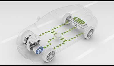 "Within the next decade, we will see more electric vehicles on our roads," says Fredrik Arp. The Volvo ReCharge Concept is a plug-in hybrid with individual electric wheel motors and lithium-polymer batteries that can be recharged via a regular electrical outlet for maximum environmental benefit. Recharging allows the car to be driven about 60 miles (100 km) on battery power alone before the car's four cylinder diesel engine is needed to power an on-board generator and provide energy to the wheel motors and recharge the battery. Since the combustion engine only powers the advanced generator, it can operate in an optimal fashion.