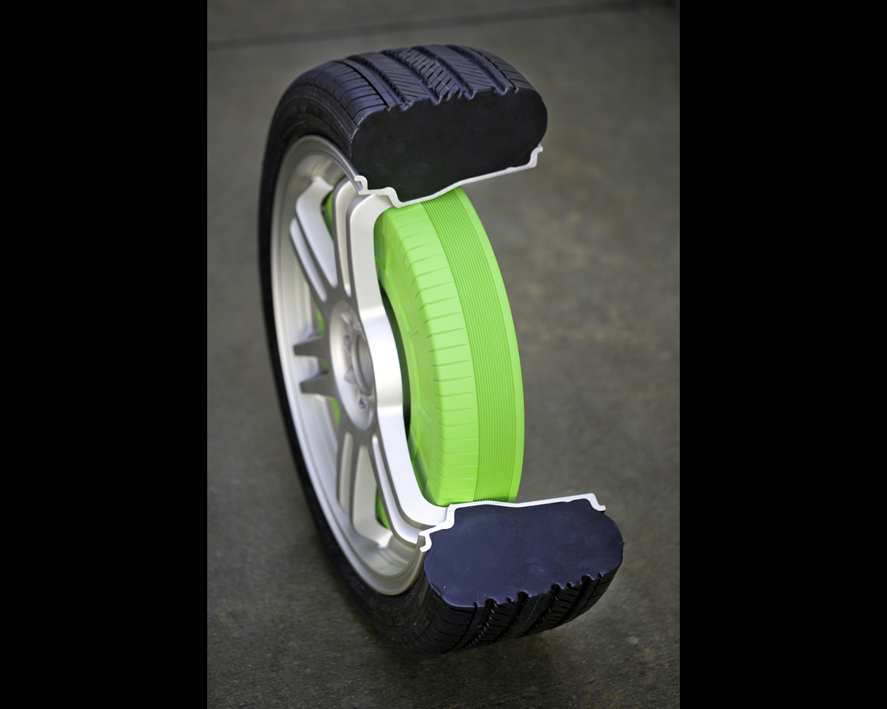 To help maximize the environmental benefits, the Volvo ReCharge Concept has high-efficiency tyres developed by Michelin. They are specially designed to accommodate the wheel motors. Further more, the car has All Wheel drive in the truest sense of the term. Power to each wheel is controlled individually. The energy that is generated during braking is transmitted to the battery pack. When the system is ultimately developed, traditional wheel brakes will be completely replaced by electrical brakes with minimal energy wasted through friction. To ensure reliable operation of the power-train and braking system, driver's inputs are fed into a quadruple-redundant electronic control system.