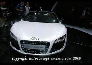 18 - Audi R8 Spyder 5.2 FSI quattroAudi R8 Spyder 5.2 FSI quattro is featuring the Audi Space Frame, Quattro permanent all-wheel drive, full LED headlights. It is powered by a V10 engine producing 525 hp/386 kW at 8.000 rpm and a maximum torque of 530Nm/ 390,91 lb ft at 6.500 rpm.. Standing start from 0 to 100 kph (62,14 mph) takes 4,1 seconds and the claimed top speed is 313 kph/194,49 mph. This new top of the range Audi has side panels and the large cover over the storage compartment for the cloth top made of carbon fiber composite. Two arched cowls, which extend to the spoiler lip and include large, integrated air vents, give the rear of the open top two seater a powerful profile. Sales are expected to start a few days after Frankfurt Show and base price is announced for 156.400 Euros.