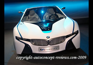 3 - BMW Vision EfficientDynamicsFor the 2009 IAA Frankfurt Motor Show, BMW is introducing an exceptional Grand Touring 2+ 2 Plug in Hybrid Concept with performance capability claimed to be similar to a M3. Offering full hybrid concept, the BMW Vision EfficientDynamics concept car is powered by a three cylinder turbodiesel and two electric motors. The overall system output is 262 kW/356 hp and maximum torque of 800 Nm/ 590 lb-ft. All-wheel drive features an electric motor on both the front and rear axle. Anticipated performances are acceleration from standstill to 100 kph (62 mph) in 4,8sec, a top speed electronically limited to 250 kph (155 mph), a fuel consumption in the European test cycle 3,76 litres/100 km ( equal to 75,1 mpg (UK) and CO2 emission of 99 g/km. In electric only drive, the CO2 emission rating is just 50 g/km taking into account the sources of energy used for generating electric power consumed (European electricity mix). The car is able to cover a distance of approximately 50 km/ 31 miles in the electric mode alone. See Car Reviews – BMW Vision EfficientDynamic Concept car 2009.