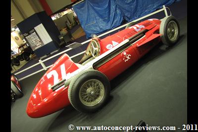 | In 1955 the Lancia D 50 is enlisted by Scuderia Ferrari. The two laterals tank gives the Lancia D50 a well balanced driving manoeuvrability and an aesthetic shape that particpate to the success of the car. Juan Manuel Fangio won 3 races with the Lancia Ferrari D50 in 1955. It is propelled by a 2500 cm3 engine 8 cylinders in V, 4 camshaft developing 265 HP at 8500 RPM for a max speed of 290 km/h. The weight is 640 kg. - click here for more pictures and informations |